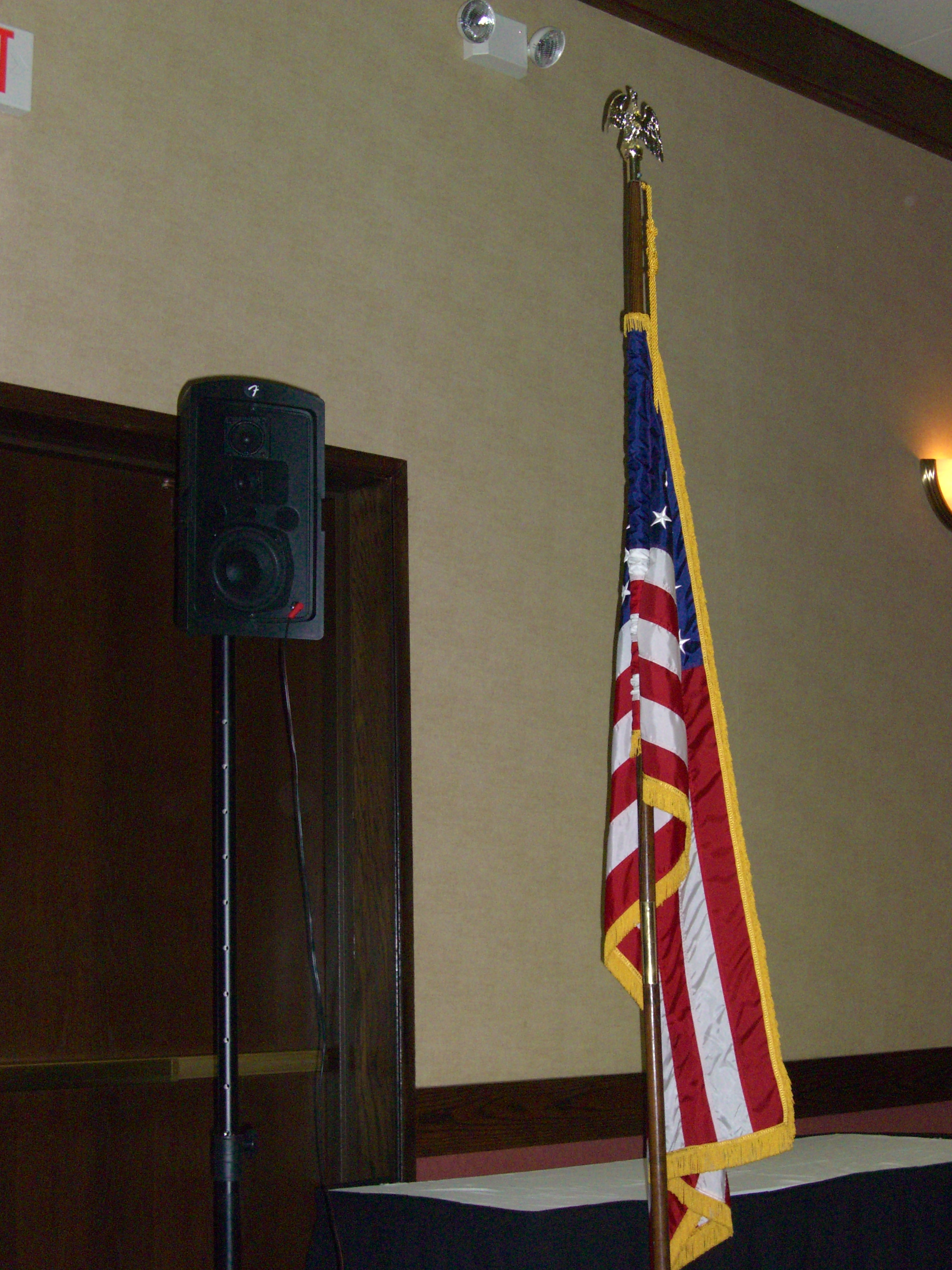 Dick Morris’ empty podium is engulfed by empty chairs at AFP event at Holiday Inn Eastgate.
